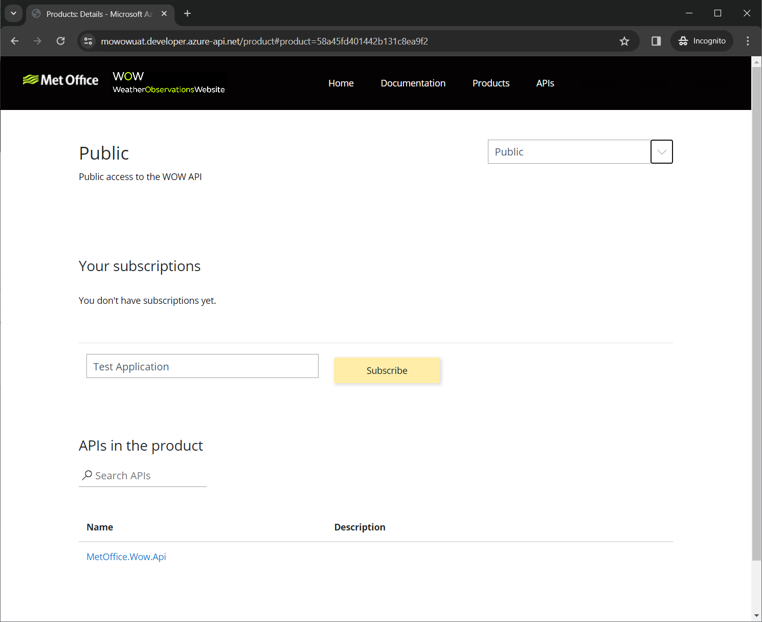When you click Subscribe, the subscription request is sent to MetOffice for review and you will receive an e-mail on the subject. You can see the state of your subscription in your profile. To see it, click your name on the right top and select Profile.